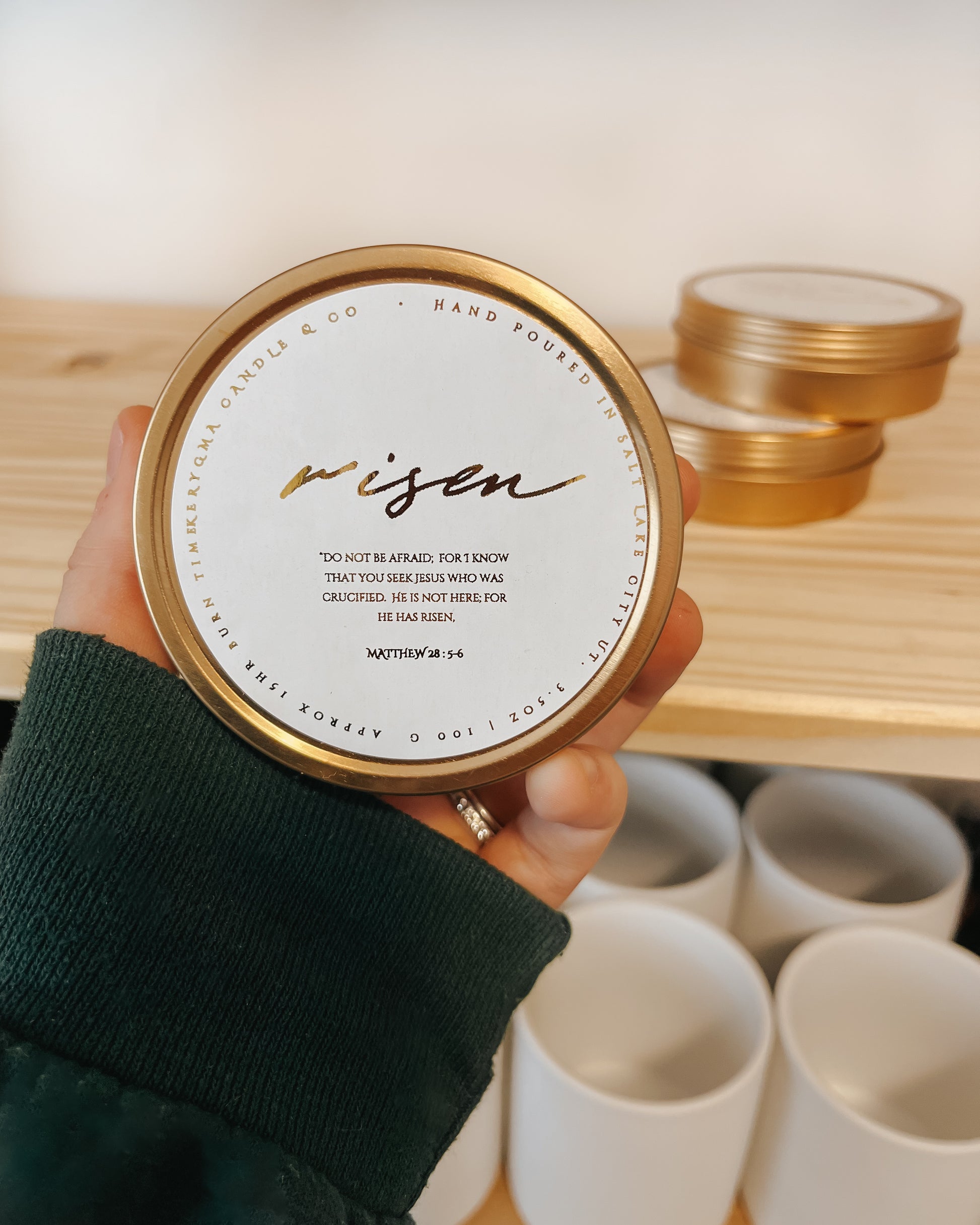 These gorgeous wooden wicked and gold foiled candle make the perfect additions to easter baskets!