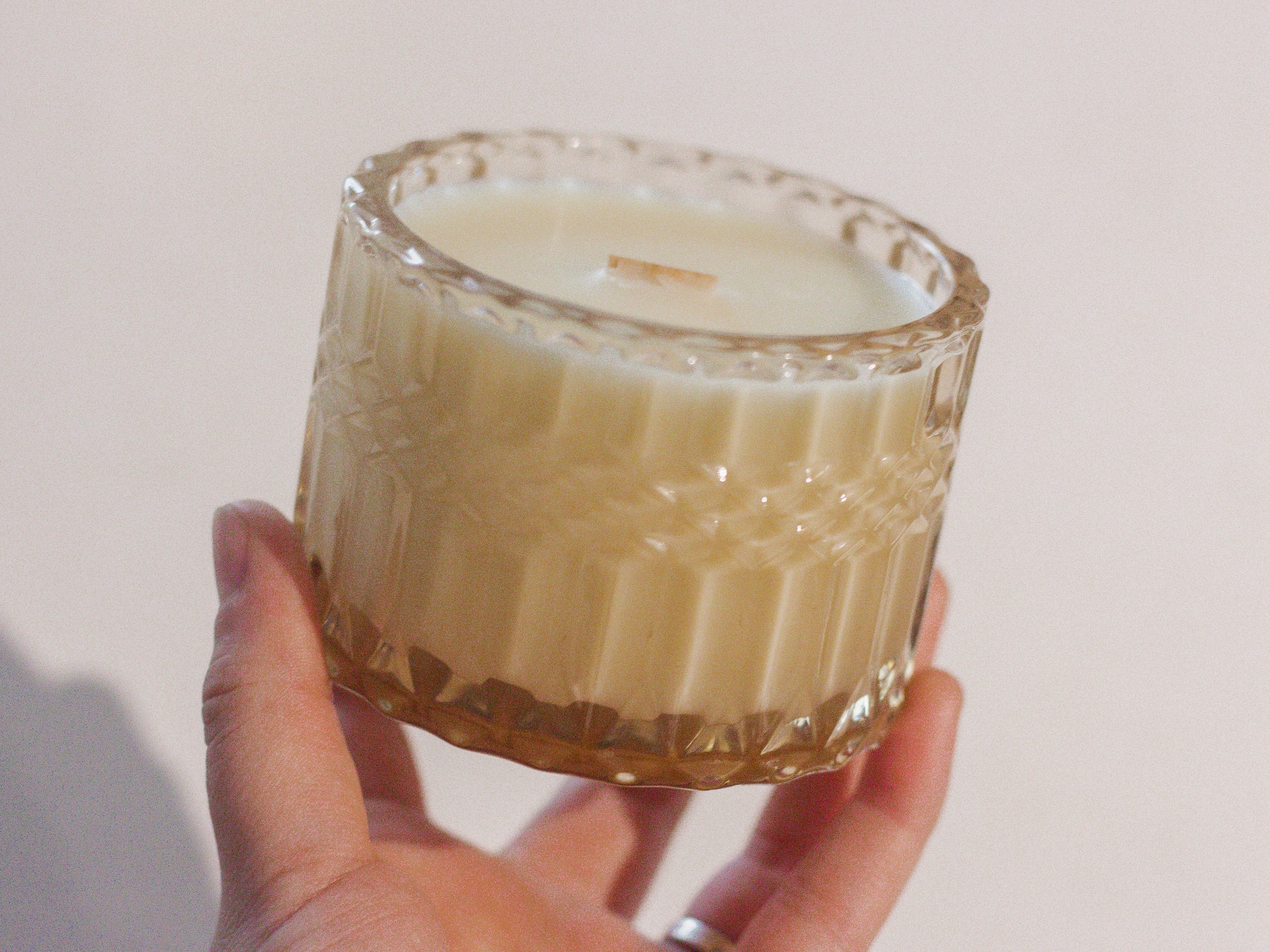 *proprietary coconut wax, 100% pure chrism essence, natural crackling wooden wick sourced from FSC-certified mills.